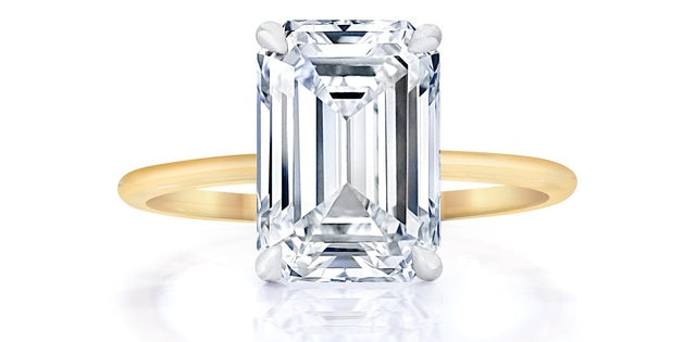 Classic and elegant, this ring is destined to be her most precious treasure. Fashion in 14K yellow gold, this ring features a 1.50 ct. certified lab-grown emerald-shaped diamond with a sleek shiny-poslied band.