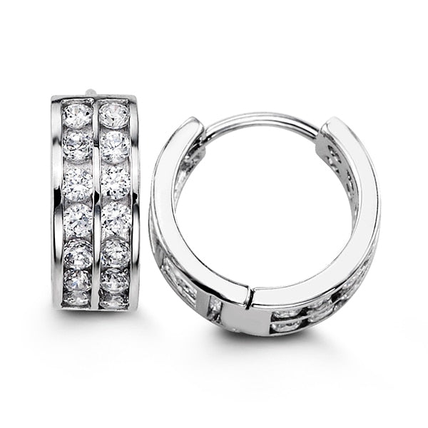 5x12 mm C.Z Double Rows Channel Setting Silver Huggies
