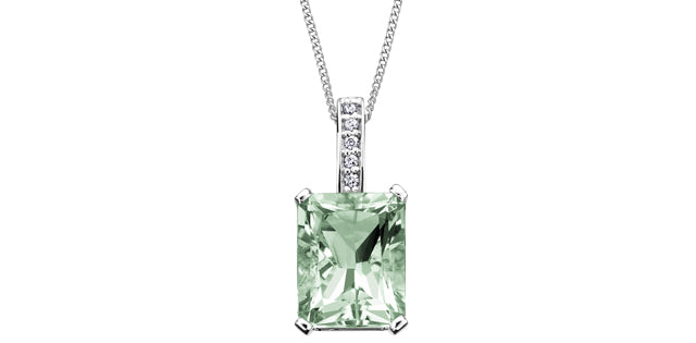 Green Amethyst Radiant Cut Diamond pendant in White Gold